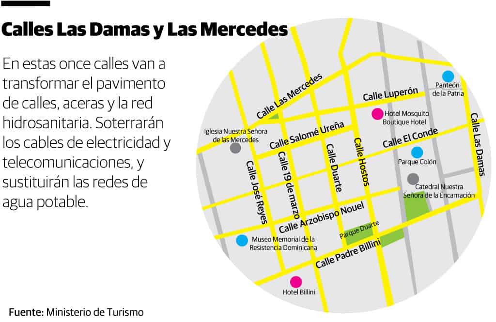 El proyecto abarcará 4.7 kilómetros, priorizando las calles Las Damas, El Conde, Hostos, Luperón, Salomé Ureña, Duarte, 19 de Marzo, José Reyes, Las Mercedes, Arzobispo Nouel y Padre Billini.