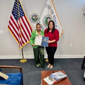 La Ciudad de Hialeah en Florida, celebra por lo alto sus Centenario donde el artista dominicano Eleazar Soriano Santana hace historia con este reconocimiento que dedica además a la República Dominicana. En la gráfica la periodista Rose Mary Santana y la jefa del despacho de la Alcaldía tras entrega formal y luego el artista recibiendo su Certificado junto a su compañera Jéssica Rodríguez.